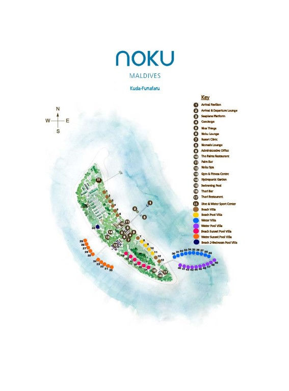 Noku Maldives (โนกุ มัลดีฟส์) รีสอ ร์ทในเครือโนกุ สัญชาติสิงคโปร์ ที่นำเอาความเป็นเอเชียมาผสมผสานกับมัลดีเวียนสไตส์ ด้วยความเข้าใจในความชอบของคนเอเชียห้อง Water villa with pool ที่นี่จะใหญ่มาก พร้อมสระว่ายน้ำส่วนตัวสุดฟิน แถมเด็กสามารถพักห้องกลางน้ำได้มากสุดถึง 3 คนอีกด้วย แนวปะการังสวย ๆ ปลา และปะการังเยอะมาก มีทั้งเต่า ฉลาม และปลานานาชนิด